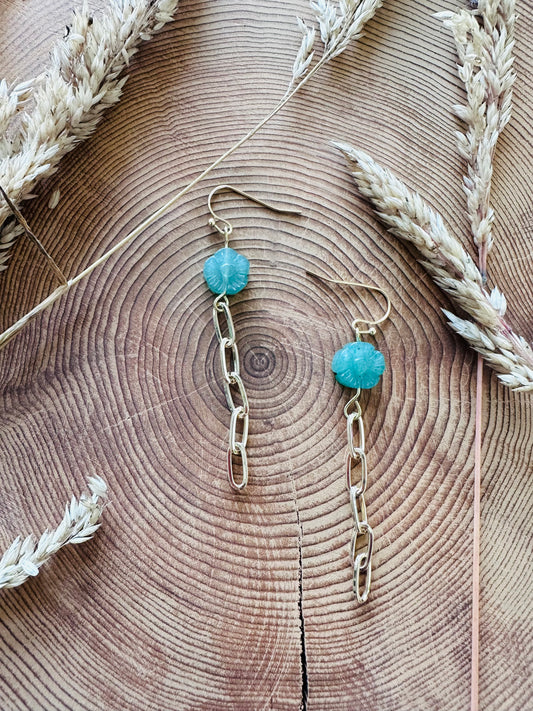Aventurine Flower Gold Paper Chain Earrings