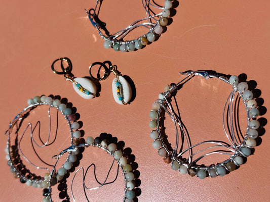 Amazonite Silver Hoops