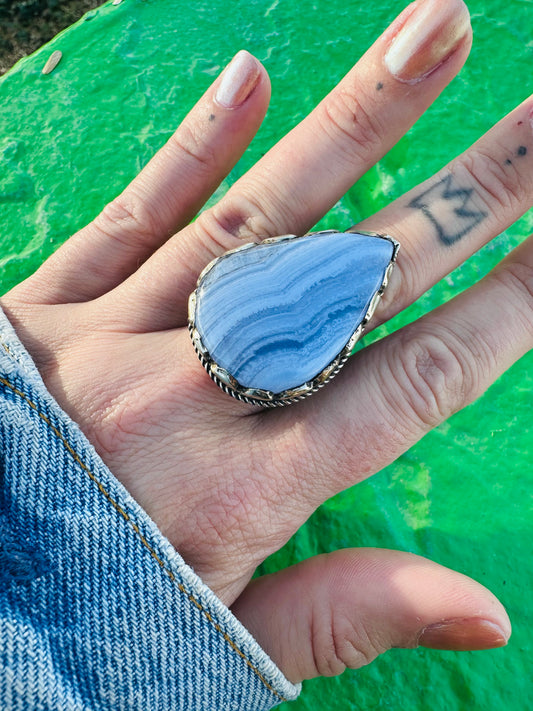 Blue Lace Agate Silver Ring