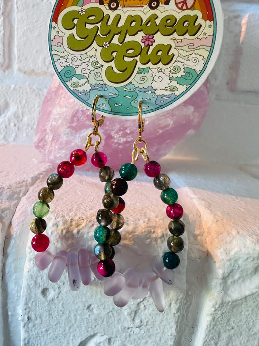 Agate and Sea Glass Huggie Earrings