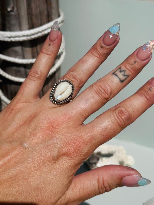 Boho Cowrie Sun Stamped Ring size 7.5